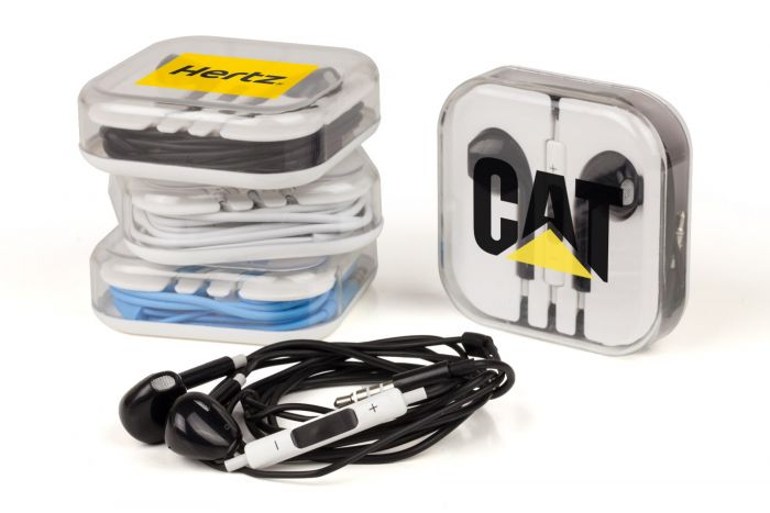Available in blue, black and white, our Budget Earphones from USB Ireland make a wonderful branded promotional product. We finish these using a full colour print process onto the transparent hard plastic case. This also means that in the case of the black and white headphones, we can turn these around on a rush service and meet almost any deadline. A fantastic, low cost promotional giveaway.