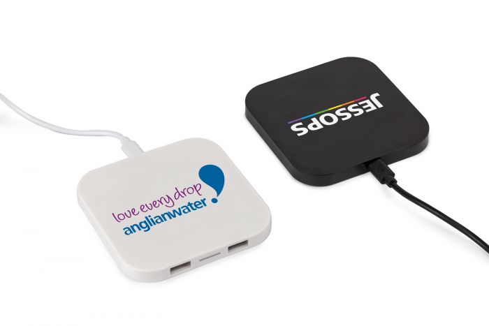 The Dual Wireless Charger is a multi-functional promotional product that supports full colour printing of logos/designs making it ideal to use as a corporate gift or even as handouts at exhibitions or events. This particular wireless charger also has two built-in USB ports enabling non inductive smartphones to also be charged through this device.