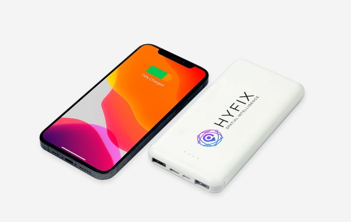 The Eco Pro 10000 Power Bank is our largest capacity power bank made of Intertek certified recycled plastic. The recycled abs plastic casing can be printed digitally with a full colour design and is available on our Express Service. With a generous battery size of 10,000mAh, the Eco Pro 10000 Power Bank can fully charge multiple devices on a single charge. It boasts two USB output ports to charge devices simultaneously, and has both micro USB and Type C input to charge the power bank.