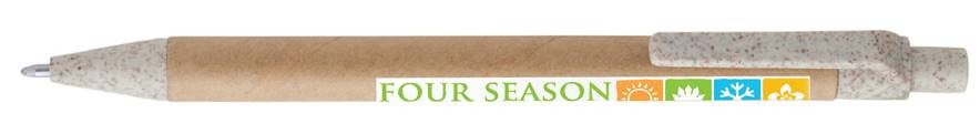 The lowest cost Eco Pen with a full colour digital print in the Irish market. Retractable pen made from recycled cardboard, with tip and clip in wheat straw, blue ink.