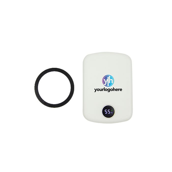 With a 5000mAh battery capacity, this sleek and compact power bank keeps your devices powered up wherever you are. Thanks to the included magnetic ring, it works with almost any smartphone — not just Mag Safe-compatible models. Simply attach the ring to your phone, snap the power bank into place, and enjoy wireless charging with no cables required. The magnetic connection keeps it secure while charging.