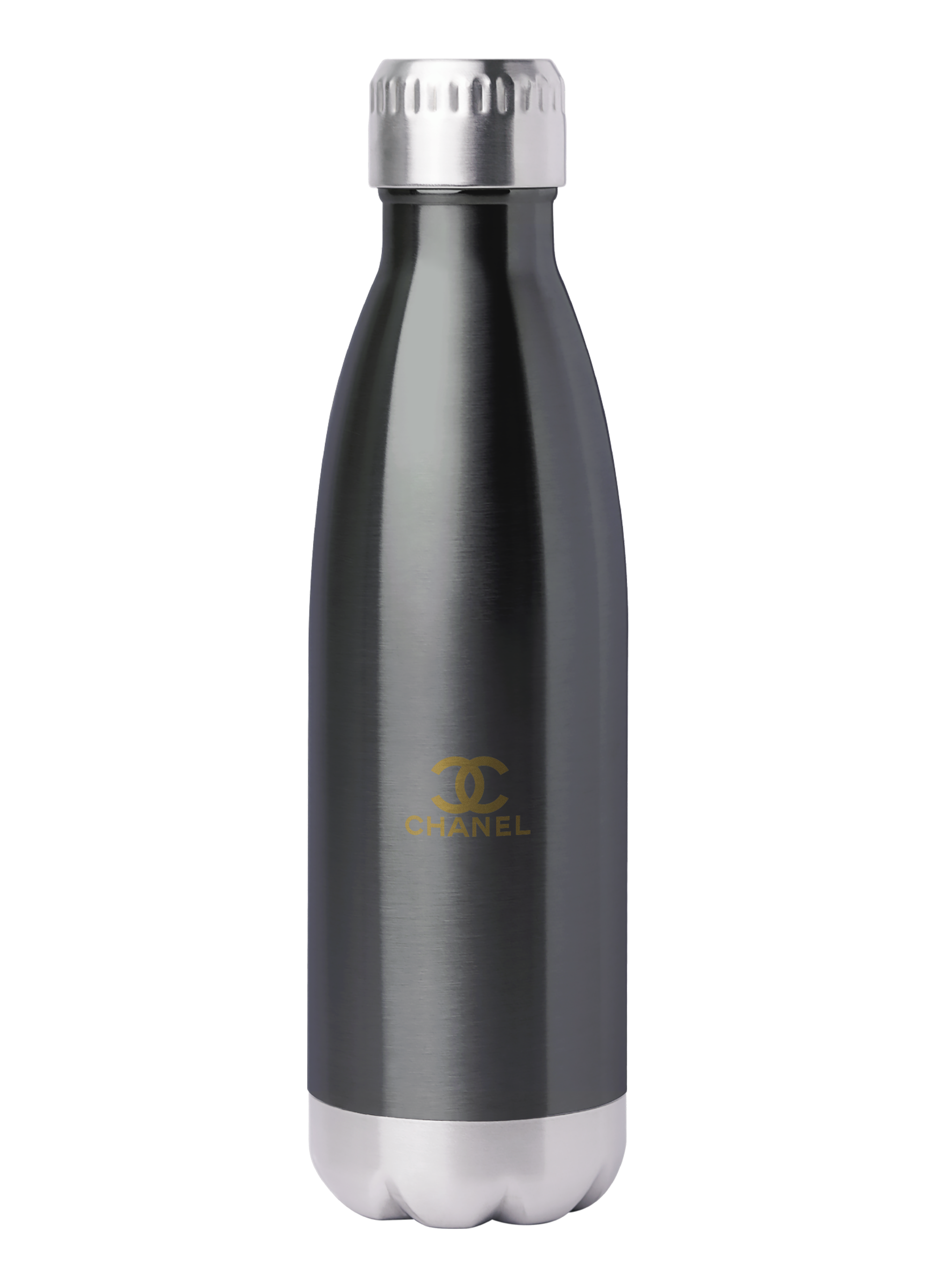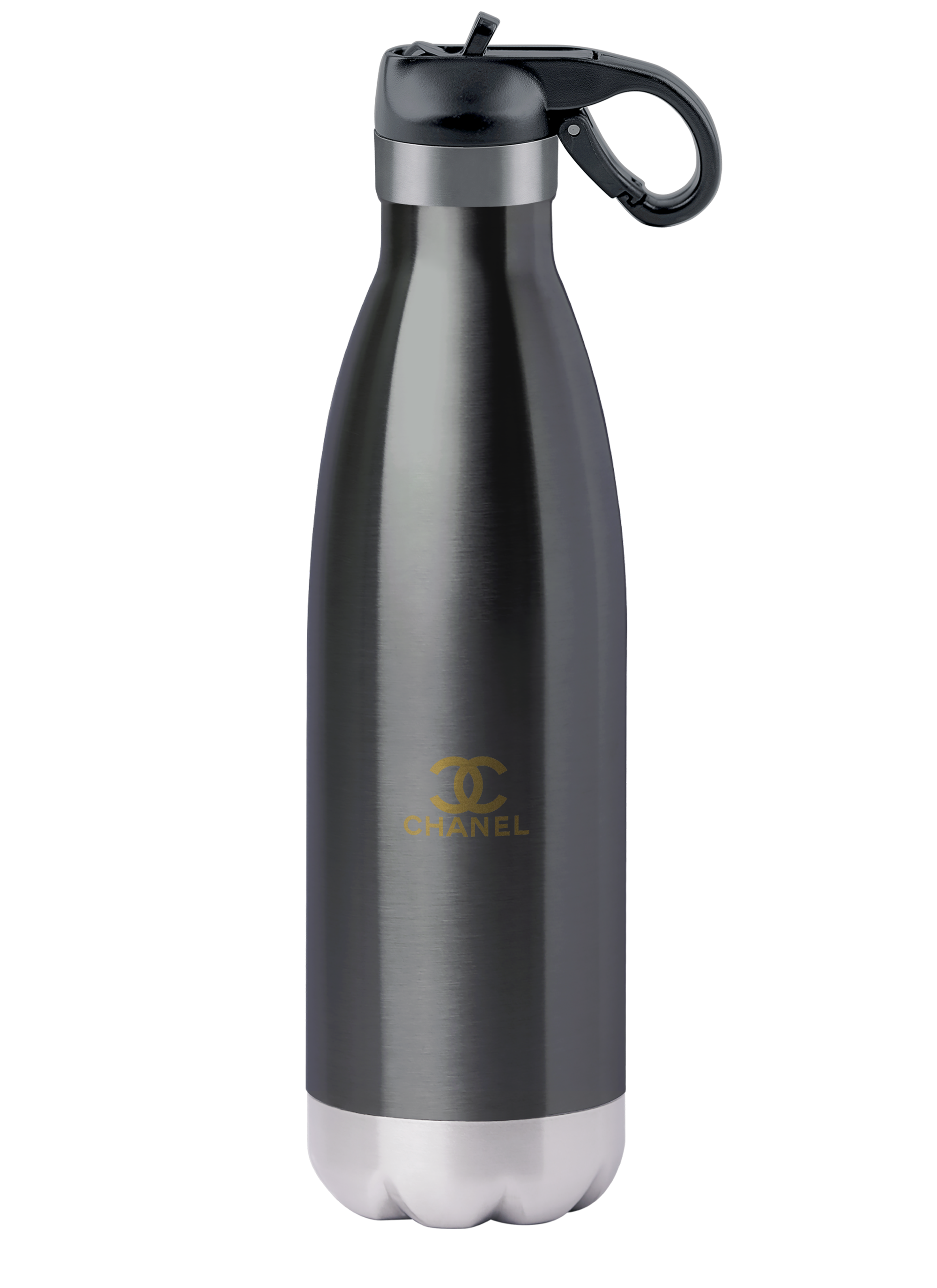 STAINLESS STEEL DOUBLE WALL BOTTLE WITH SHINY GUNMETAL BODY AND CHOICE OF LIDS