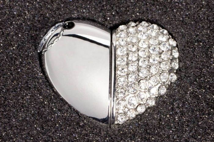 Each Heart USB in this bundle is supplied as USB3.0 in 8GB, 16GB or 32GB sizes, and can come with an attractive chain necklace on request. Half of the USB heart is covered in a sparkly, crystal diamante, and the other half is finished in simple polished chrome which can be engraved with a small logo or even initials.