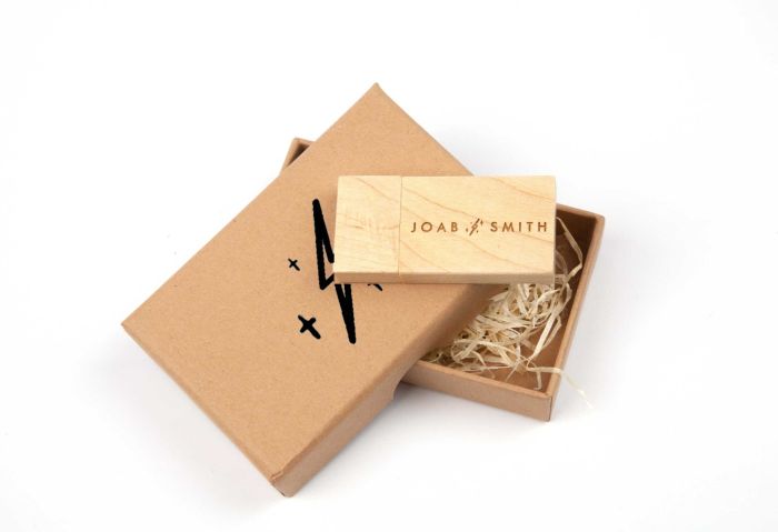 We have paired our Wood USB 3.0 with the new ultra-slim Eco Box to create this gorgeous bundle made of natural materials. The Wood USB is available in either light or dark wood and looks stunning printed or engraved with both simple and intricate logos. With two discreet magnets in the lid of the USB, it is held together beautifully.