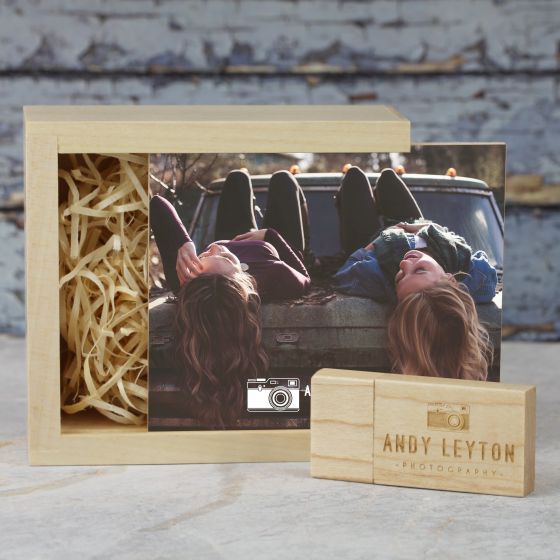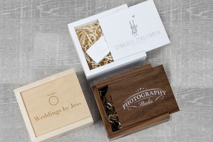 The white version, in particular, offers a vintage feel which is very on trend and ensures any photographers logo or message stands out. Each box and USB is carefully crafted to the highest standard offering superior quality with a luxury feel.
